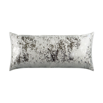 Sand Dune Lumbar features a silver grungy metallic pattern that works perfectly with a glam chic look. This pillow has the same fabric back to back and may come in these colorways: Pebble, Grey, and White. Sand Dune may also be available as a square pillow.