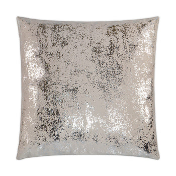 Sand Dune features a silver grungy metallic pattern that works perfectly with a glam chic look. This pillow has the same fabric back to back and may come in these colorways: Pebble, Grey, and White. Sand Dune may also be available as a lumbar pillow.