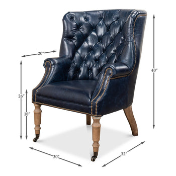 Sarreid Ltd Welsh Blue Leather Chair - 29727