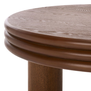Illuminate your living space with the elegant Averny Round Coffee Table. Crafted from robust pine wood and MDP, this coffee table exemplifies a blend of robustness and style. Dressed in a lavish walnut hue, the Averny Round Coffee Table brings a warm and welcoming ambiance to your home. Its circular design not only provides ample space for your coffee mugs, favourite books, or decorative items but also adds a dynamic aesthetic to your setup. The sturdy construction ensures lasting use, making it a worthwhile investment.