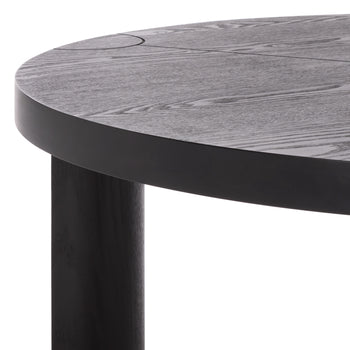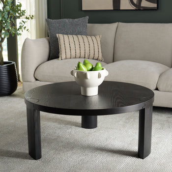 Discover the allure of simplistic elegance with the Gaby round coffee table. Designed in a sophisticated black palette, its stunning aesthetics match various interior styles. It's constructed with robust pine wood and MDP - blending durability and style without compromise. The Gaby round coffee table is not just a functional piece; it's a timeless addition to your living space. Be it for casual coffee dates or just as a stylish stand for your favorite decor, this table offers versatile use. Infuse your space with understated grace, choose Gaby round coffee table.