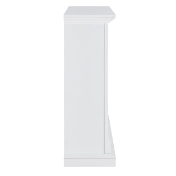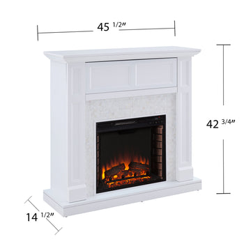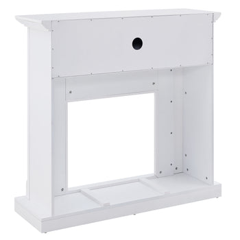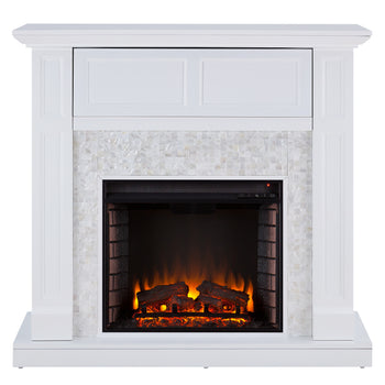 Complete the coziness of your book nook with this tiled media fireplace. Tiles in monochromatic shades of white surround the electric firebox. A faux brick interior with lifelike flames and embers lights up a realistic fireplace look,with or without heat, adding grace and charm to any space. Easily accessible hidden media storage opens from the top, providing a place for DVDs, books, or remote controls. Wall mount your television above this convenient mediacenter fireplace. Pull up your favorite chair and enjoy a book by firelight when you place this fireplace media center in your living room or open concept living space.