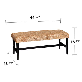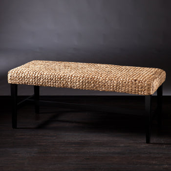 Weave a living room seating wonder with this small space bench. The woven water hyacinth seat steadies your guests or your cocktail tray in front of the sofa, while the I-frame creates a clean, minimalist look. Come home to a sleeker take on coastal style with this bench in the entry, in front of your vanity in the dressing area, or centering your living room seating arrangements.