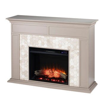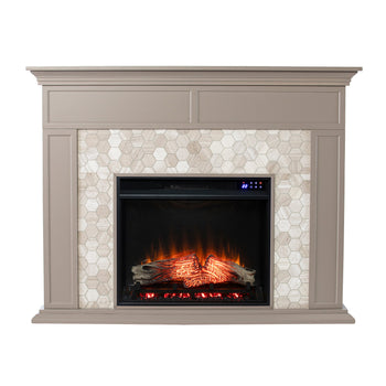 SEI Furniture Torlington Marble Tiled Touch Screen Electric Fireplace - White