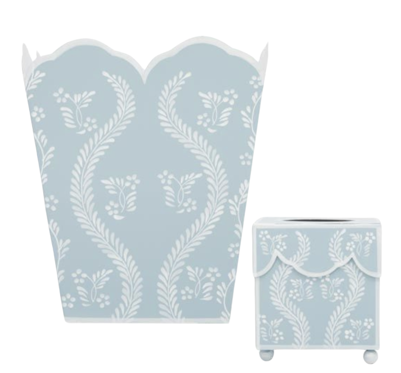 SKY BLUE SQUARE TRELLIS WASTEPAPER BASKET & TISSUE HOLDER
