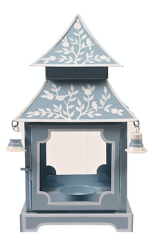 The Enchanted Home Soft Blue & White Bird & Vine Pagoda Lantern