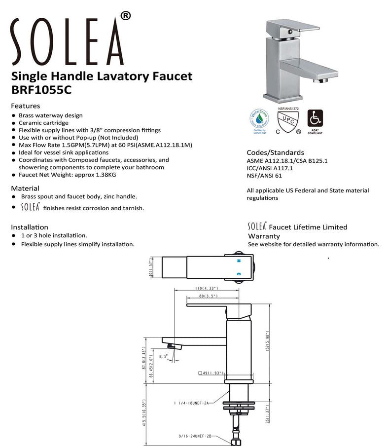 Safavieh Solea Bliss Single Handle Bathroom Vessel Faucet, BRF1055