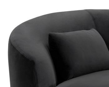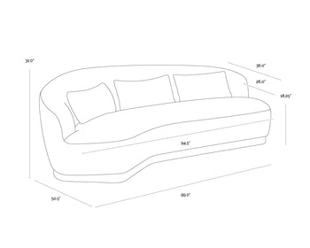 Boasting a design that is all about that curve appeal, this marvelous sofa will add shape to any space. Stocked in shadow grey or dove cream fabric and completed with a wooden frame. Includes three pillows.