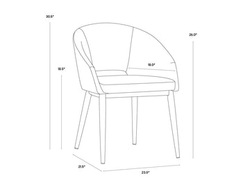 This compact barrel back dining armchair is effortlessly cool. Stocked in snow faux leather with a champagne gold frame. Handle With Care: This design has been crafted with faux leather. Faux leather is manufactured to reflect the natural characteristics of leather; as such, color variations, markings, wrinkles, grooves, and light scratches are appreciated characteristics. No two pieces will be alike. Visit our Product Care page for more information on how to ensure the lasting beauty of this piece.