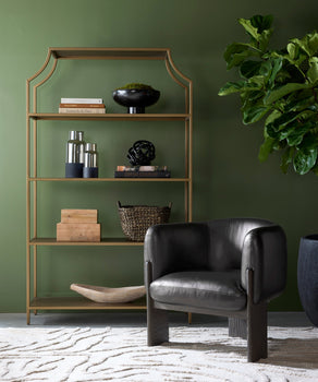 Embrace the luxurious comfort of the uniquely shaped Trine Lounge Chair. Generously padded and upholstered in our stylish vintage camel leather, this piece will complement any home aesthetic. Completed with a rustic oak wood base with a cerused finish on the legs. As wood is an organic, porous material, these pieces will contain natural variations of texture and may also exhibit fine indentations and cracks. Wood pieces will also display a disparity of colour and grain, and visible knots and burls that add to the character of each piece. Handle with Care: This design has been crafted with top grain leather. Leather is a natural material; as such, colour variations, markings, wrinkles, grooves and light scratches are acceptable and appreciated characteristics. No two pieces are alike. Visit our Product Care page for more information on how to ensure the lasting beauty of this piece.