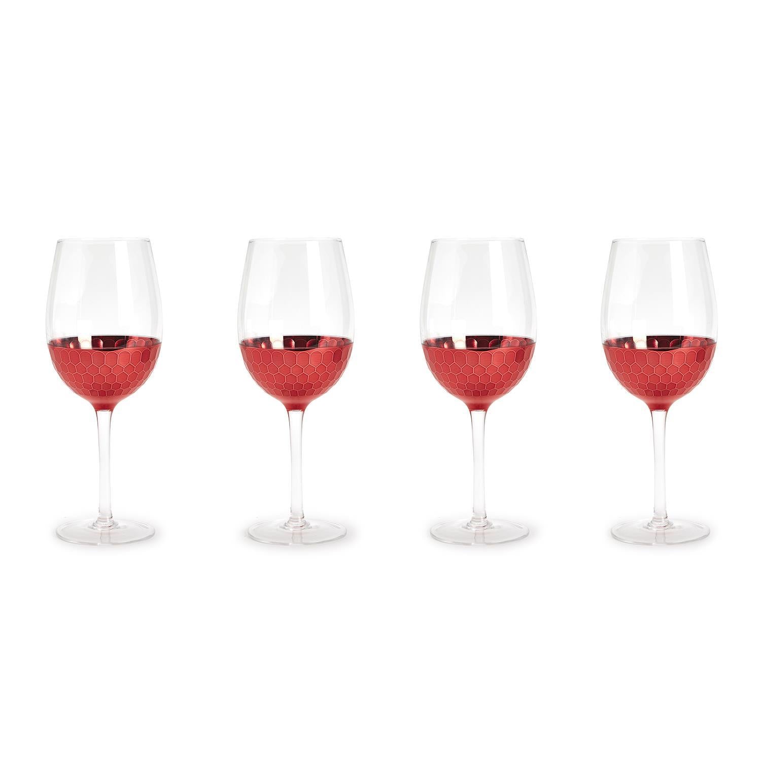 Two's Company Red Hot Set of 4 Faceted Wine Glasses