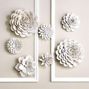 Two's Company White Porcelain Garden Flower Wall Sculptures - Porcelain (set of 7)