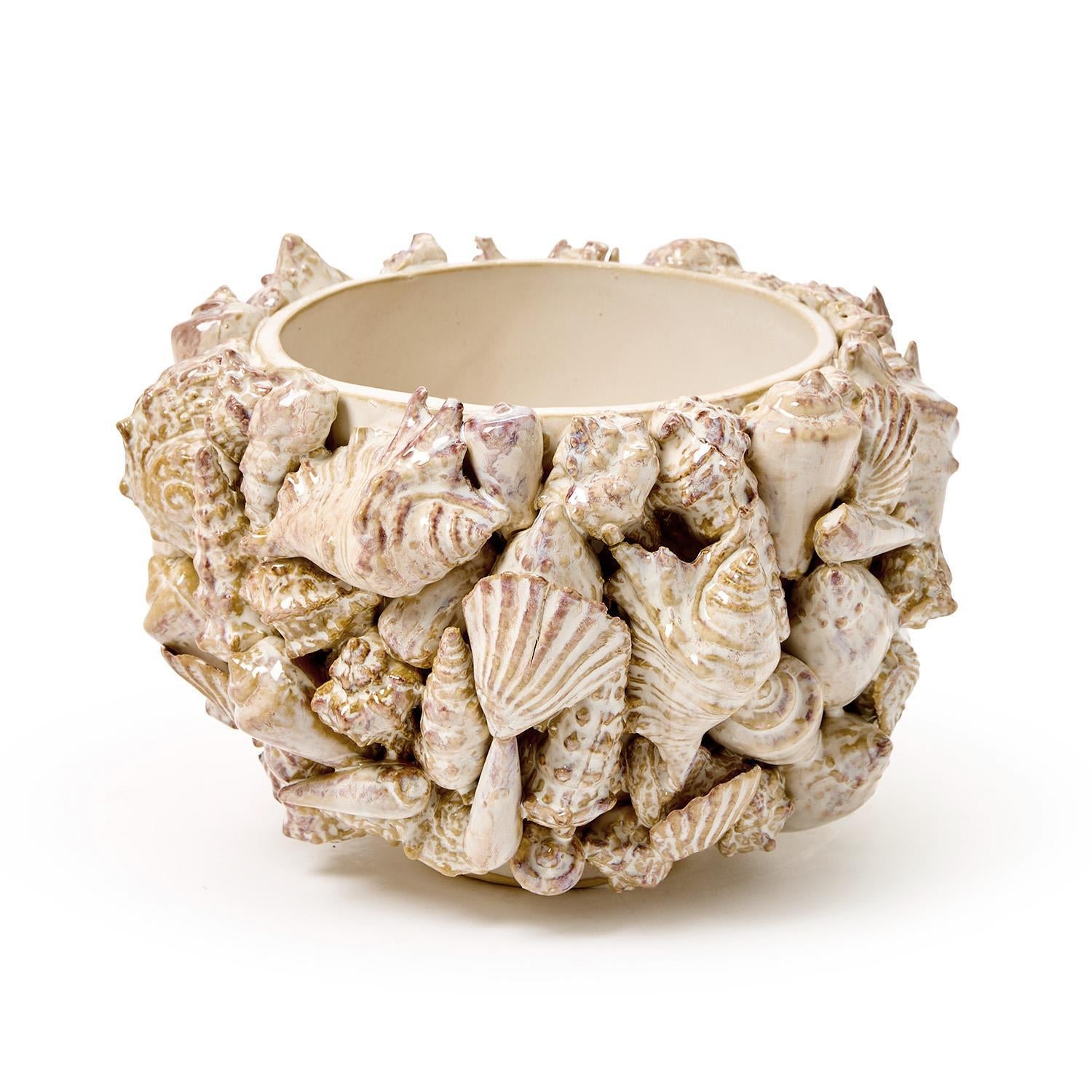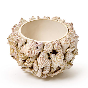 Bring the serene beauty of the ocean into your living space with our 5 3/4" Shell Hand Crafted Planter. This ceramic masterpiece is handcrafted to perfection with each shell crafted by hand, placed intricately on a base and then hand painted with care. Add a touch of coastal charm to your home with this unique planter, perfect for displaying your favorite plants or flowers in style.