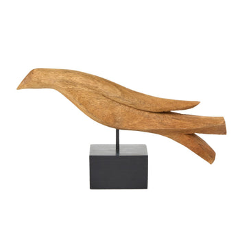 Elevate your space with the Free as a Bird Sculpture on Black Stand. This exquisite piece blends modern design with natural elements, featuring a unique, handcrafted Mango Wood bird perched on an elegant iron stand. Each sculpture is a one-of-a-kind creation, with slight color variations and natural fissures adding to its charm.