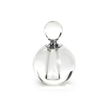 Transform your vanity into a luxurious haven with this exquisite crystal perfume bottle. The sparkling clear glass sphere catches the light, adding a touch of glamour to your dressing area or bedroom. Handmade with precision, this elegant piece exudes sophistication and charm. Use it to store your favorite scent or display it as a standalone decorative accent. This stunning bottle comes in a gift box, making it a perfect present for a loved one.