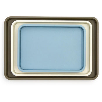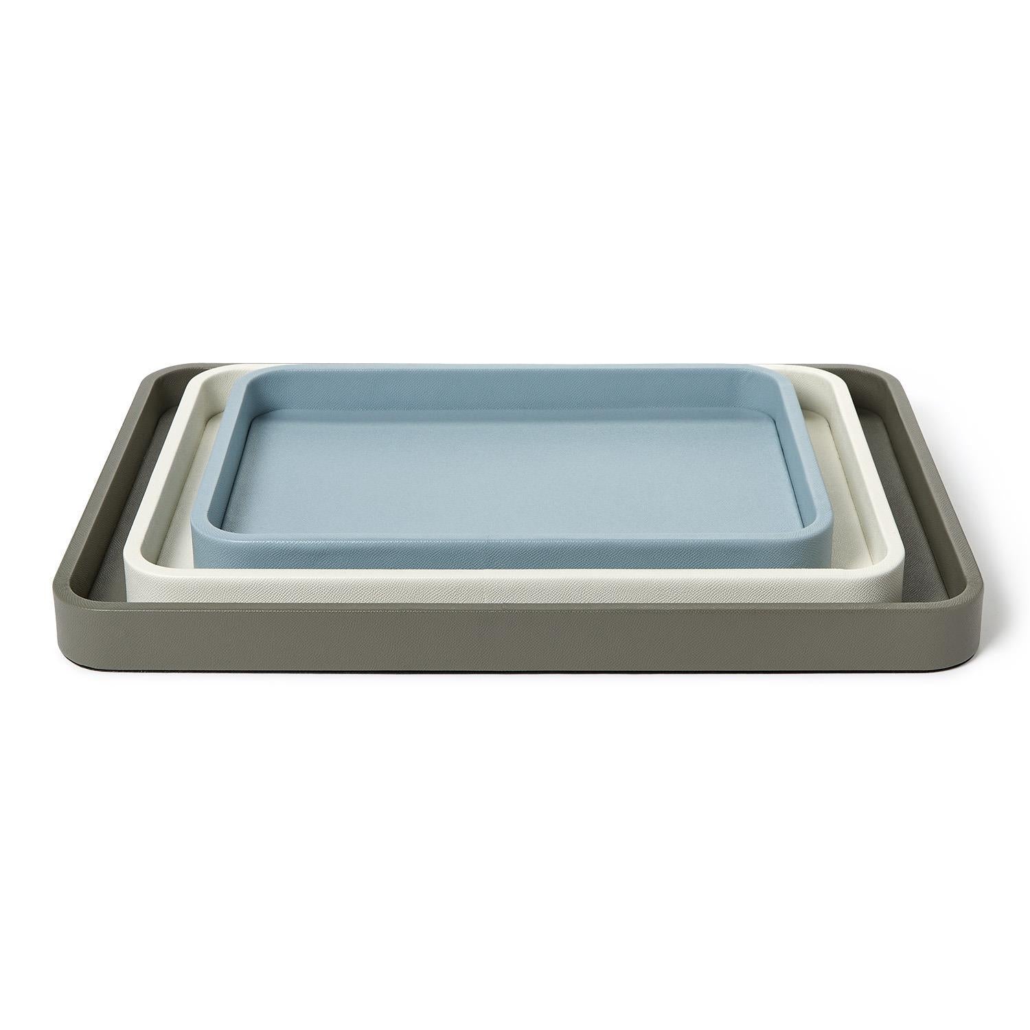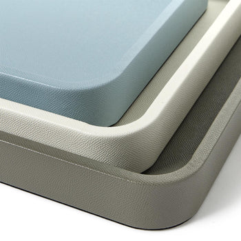 Elevate your decor with the Milano Set of 3 Decorative Oval Trays, a harmonious blend of elegance and functionality. Crafted from vegan leather, these trays are a testament to exquisite craftsmanship. Whether adorning a coffee table or serving as a stylish centerpiece, these trays effortlessly enhance any space with their captivating light blue, white, and grey hues. The perfect addition to any home, these trays are versatile and chic.