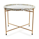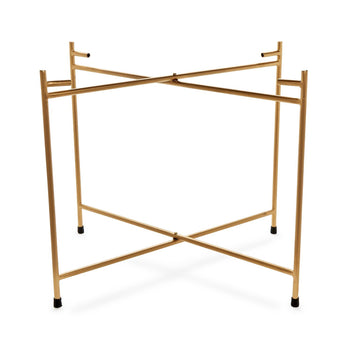 Add a touch of glamour and sophistication to your living space with this exquisite gold "x" stand that elegantly holds a 24" tray. Perfect for those with small or temporary spaces as each stand folds neatly for easy storage. The sleek metal design exudes luxury and style, perfect for holding round, rectangle or even square tray. **STAND ONLY