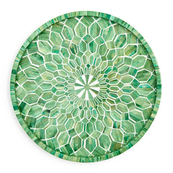 Two's Company Grn/Wht Inlaid Decorative Round Serving Tray