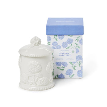 Two's Company Hydrangea Relief Filled Candle - Fresh Blooms