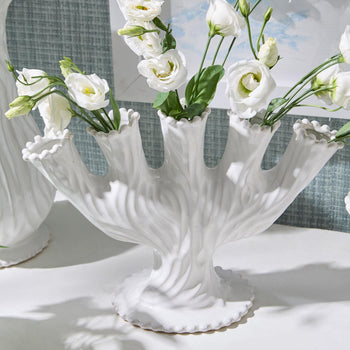Transform your living space with the elegant Ribbon Reef 5 Stem Vase from our Ceramic Collection. Standing alone or filled with flowers this stunning vase boasts a unique shape and texture that will instantly elevate any room.