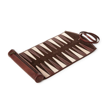 Two's Company Roll-Up Portable Genuine Leather Backgammon Game Set