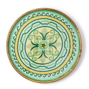 Transform your dining experience with the Garden View Set of 2 Hand-Crafted Wooden Round Trays. Made from exquisite mango wood with a food-safe lacquer, each tray is a celebration of craftsmanship and natural beauty. Hand-crafted with care, these trays showcase minor imperfections that add to their charm. Perfect for serving hors d'oeuvres or displaying decorative accents, these trays are both functional and decorative. Indulge in a touch of artisanal elegance for your home.