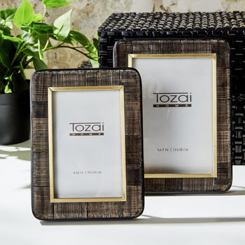 Add a touch of elegance to your cherished memories with this set of 2 chiseled photo frames. The intricate hand chiseled bone detail adds a unique texture and style to any room. These frames come in two sizes, perfect for holding 4" x 6" and 5" x 7" photos either horizontally or vertically.