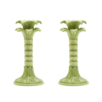 Two's Company S/2 Green Palm Leaf Taper Candlestick Holder