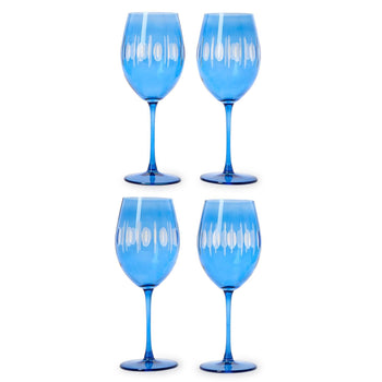 Two's Company S/4 Sparkling Cut Blue Hand Engraved Stemmed Wine Glasses