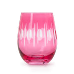 Two's Company S/4 Sparkling Cut Pink Hand Engraved Stemless Wine Glasses