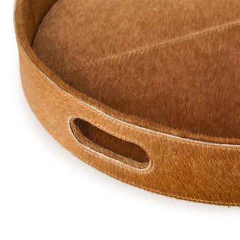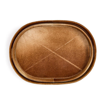 Elevate your space with the Jasper Set of 2 Cowhide Brown Trays. Crafted with a natural cowhide and sturdy MDF, these trays are a perfect blend of rustic charm and modern elegance. Whether used for serving drinks, displaying accents, or organizing essentials, these trays add a touch of sophistication to any setting.