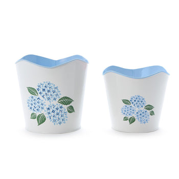 Two's Company Set of 2 Hydrangea Blue Flower Cachepots