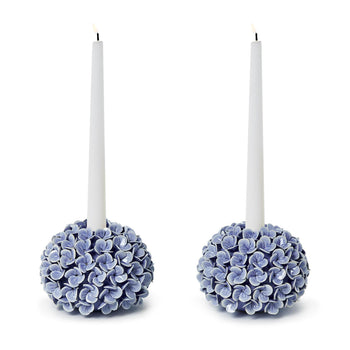 Two's Company Set of 2 Hydrangea Flower Bud Vases / Taper Candle Holders