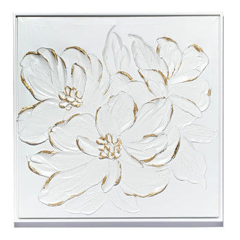Elevate your living space with this stunning set of 2 White Florals with Gold Accent Textured Plaster Wall Art. Handcrafted with intricate molding paste and plaster on canvas, these 24" square pieces exude elegance and artistry. Perfect for adding a touch of sophistication to your dining room or bringing a sense of tranquility to your bedroom, these pieces are sure to impress.