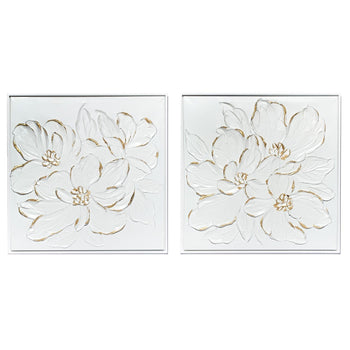 Two's Company Set of 2 White Florals with Gold Accent Wall Art