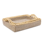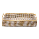 Two's Company Set of 3 Natural Seagrass Rectangle Trays with Wooden Bead Accent