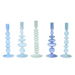 Two's Company Set of 5 Shades of Blue Hand-Blown Glass Taper Candlestick Candleholders