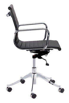 This stylish and practical office chair is stocked in tan faux leather on the front and back with a stainless steel frame and legs. Castors allow for mobility. Perfect for office spaces. Handle With Care: This design has been crafted with faux leather. Faux leather is manufactured to reflect the natural characteristics of leather; as such, colour variations, markings, wrinkles, grooves, and light scratches are appreciated characteristics. No two pieces will be alike. Visit our Product Care page for more information on how to ensure the lasting beauty of this piece.
