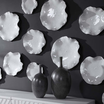 Uttermost's Decor Combines Premium Quality Materials With Unique High-style Design.With The Advanced Product Engineering And Packaging Reinforcement, Uttermost Maintains Some Of The Lowest Damage Rates In The Industry. Each Product Is Designed, Manufactured And Packaged With Shipping In Mind. A Trio Of Ceramic Flowers With Detailed Veining, Glazed In A Fresh White Tone. May Be Hung On Wall Or Used As Tabletop Accessory. Sizes: Sm-11x3x11, Med-15x3x15, Lg-18x4x18