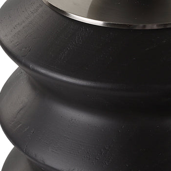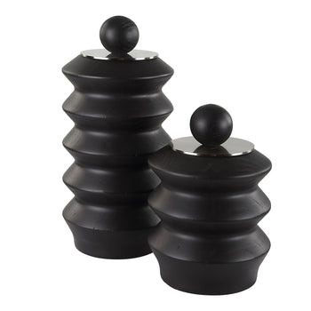 Accent Any Table Or Countertop With These Black Stained Wood Containers With Brushed Nickel Lift-off Lids. Sizes: S-7x10x7, L-7x14x7