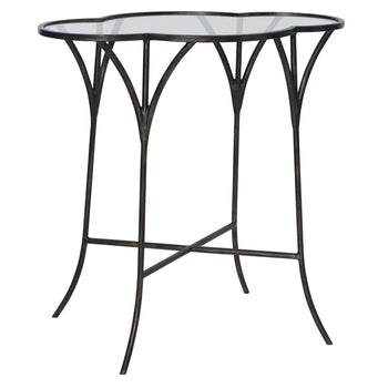 Uttermost's Accent Tables Combine Premium Quality Materials With Unique High-style Design.With The Advanced Product Engineering And Packaging Reinforcement, Uttermost Maintains Some Of The Lowest Damage Rates In The Industry. Each Product Is Designed, Manufactured And Packaged With Shipping In Mind. Whimsically Designed With Moroccan Roots, This Accent Tables Features A Hand Forged Iron Framework Finished In Aged Black With A Scalloped Top With Clear Tempered Glass.