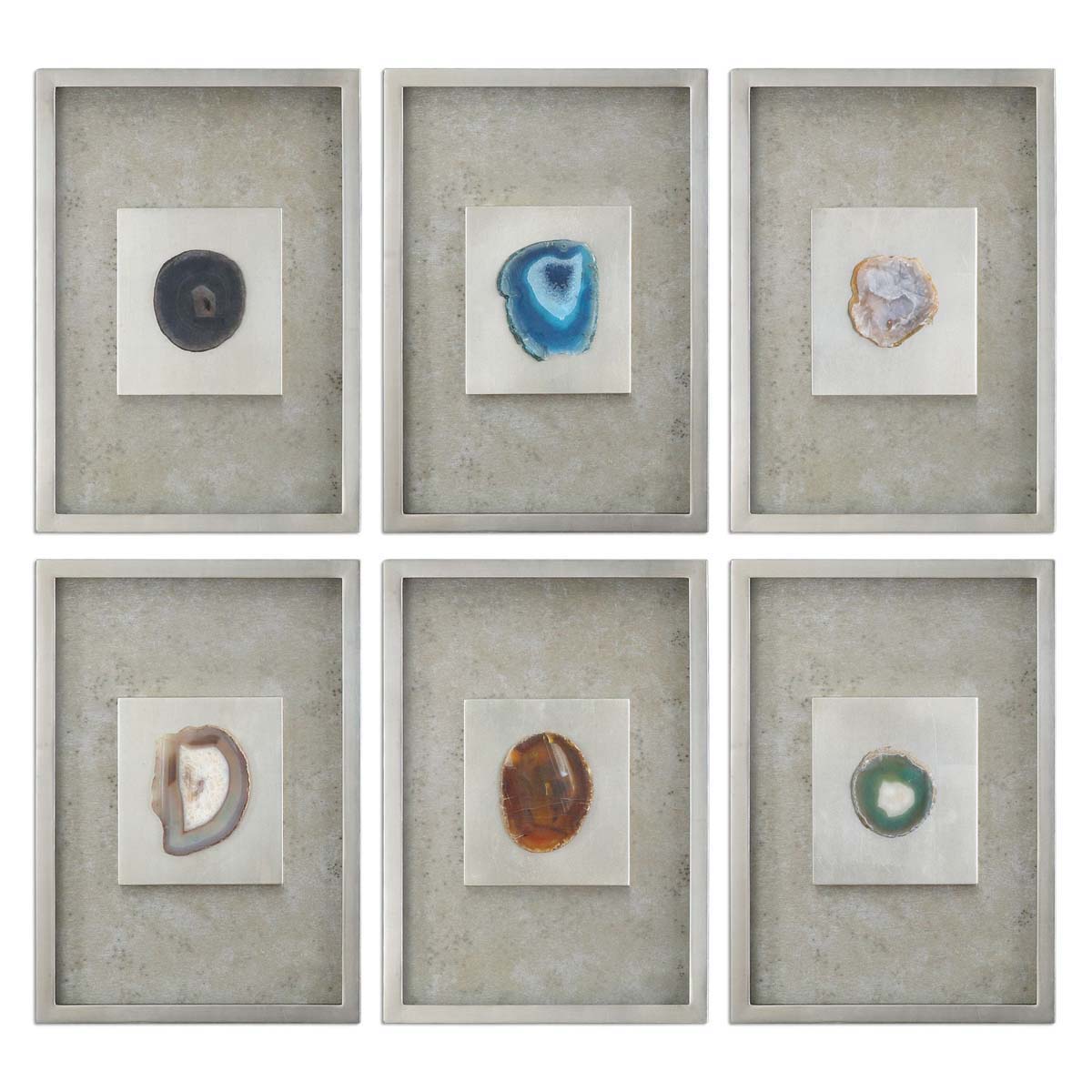 Uttermost's Alternative Wall Decor Combines Premium Quality Materials With Unique High-style Design.With The Advanced Product Engineering And Packaging Reinforcement, Uttermost Maintains Some Of The Lowest Damage Rates In The Industry. Each Product Is Designed, Manufactured And Packaged With Shipping In Mind. Silver Leaf Shadow Box Accented With Mottled Silver Champagne Background Encasing Slabs Of Colorful Agate Stone Under Glass. The Agate Will Vary Slightly In Shape And Color.