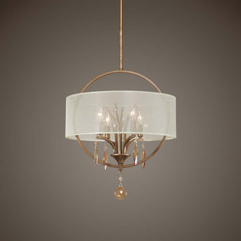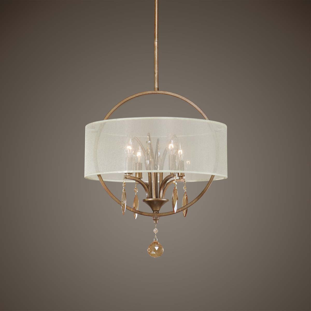 Uttermost's Light Fixtures Combine Premium Quality Materials With Unique High-style Design.With The Advanced Product Engineering And Packaging Reinforcement, Uttermost Maintains Some Of The Lowest Damage Rates In The Industry. Each Product Is Designed, Manufactured And Packaged With Shipping In Mind. Burnished Gold Metal With Golden Teak Crystal Leaves And A Silken Champagne Sheer Fabric Shade.
