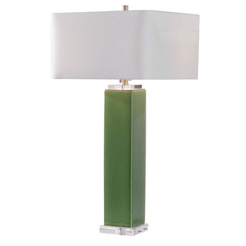 Uttermost's Lamps Combine Premium Quality Materials With Unique High-style Design.With The Advanced Product Engineering And Packaging Reinforcement, Uttermost Maintains Some Of The Lowest Damage Rates In The Industry. Each Product Is Designed, Manufactured And Packaged With Shipping In Mind. Finished In A Striking Tropical Green Glaze, This Ceramic Table Lamp Is Accented By Thick Crystal Ornaments And Brushed Nickel Accents. The Square Hardback Shade Is A White Linen Fabric.