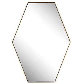 This Hexagon Mirror Features A Contemporary Style Using A Stainless Steel Frame Finished In A Plated Brushed Brass, Surrounding A Floating Style Polished Edge Mirror. May Be Hung Horizontal Or Vertical.