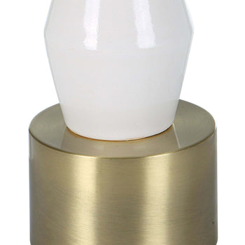 The Architect Table Lamp Showcases A Towering Build Of Ceramic Components In An Ivory Gloss Glaze Complemented By Antique Brushed Brass Plated Iron Details. The Round Shade Is Covered In A Casual White Linen Fabric.