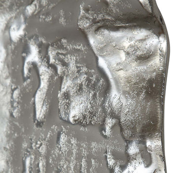 Handcrafted Cast Aluminum Wall Accent Showcases A Heavily Textured Organic Shape In A Nickel Plated Finish. A Circular Hanger On The Back Provides Countless Hanging Options, Enabling Truly Unique Wall Designs. Felt Pads Also Included For Use As A Tabletop Tray.
