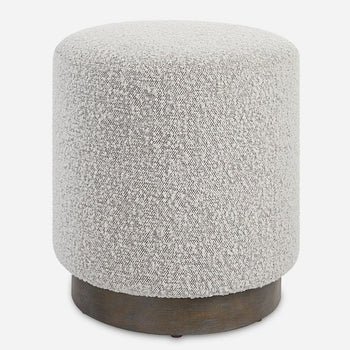 This Plush Ottoman Is Covered In A Casual Ivory And Warm Gray Boucle Fabric With A Natural Walnut Stained Oak Base. Versatile And Stylish, This Piece Can Be Used As A Seat Or Footrest, Grouped Together Or As A Singular Accent Piece.
