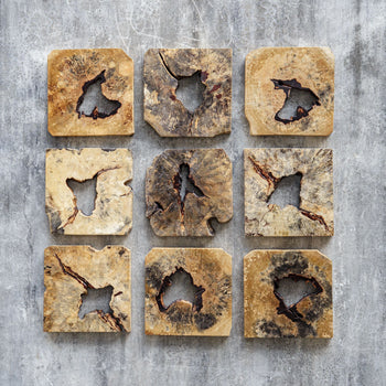 This Set Of Nine Wood Wall Pieces Is Crafted From 100% Tamarind Wood In A Natural Finish. Because Each Is Individually Handcrafted, Natural Variation Will Occur From Piece To Piece.