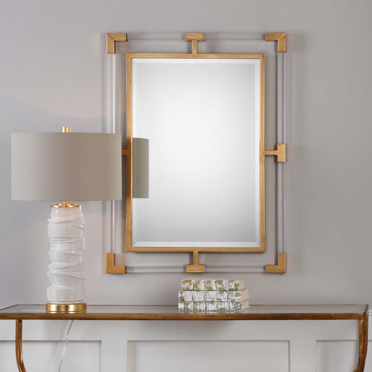 Uttermost's Mirrors Combine Premium Quality Materials With Unique High-style Design.With The Advanced Product Engineering And Packaging Reinforcement, Uttermost Maintains Some Of The Lowest Damage Rates In The Industry. Each Product Is Designed, Manufactured And Packaged With Shipping In Mind. This Mirror Can Certainly Serve As A Focal Point For Any Room. Combining Forged Iron, Finished In A Metallic Gold Leaf, With Suspended, Clear Acrylic, Solid Bars Creating A Modern Feel. Mirror Has A Generous 1 1/4" Bevel. May Be Hung Horizontal Or Vertical.